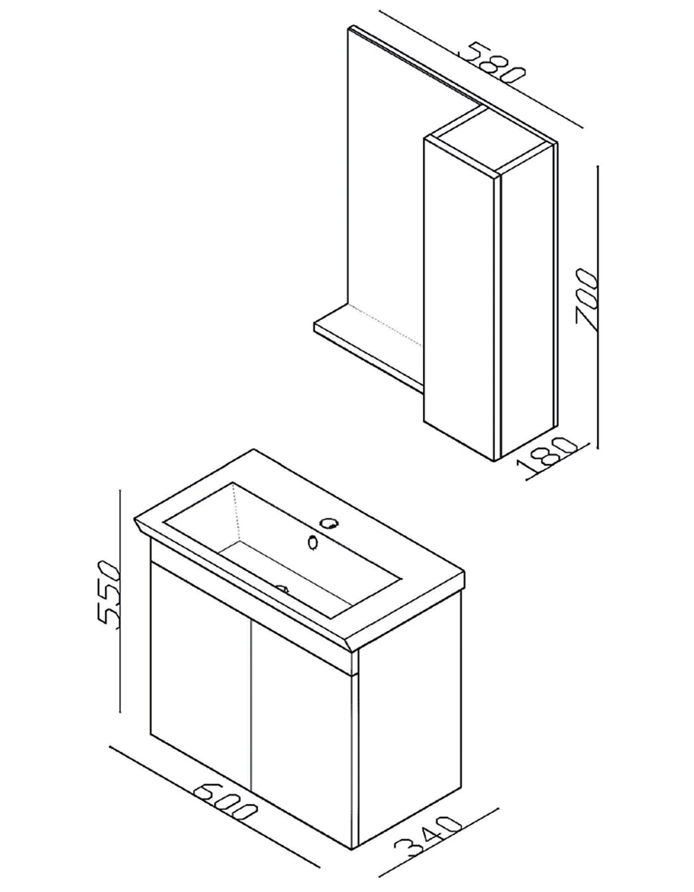 LİNEART İNCİ 60cm TAKIM BANYO DOLABI